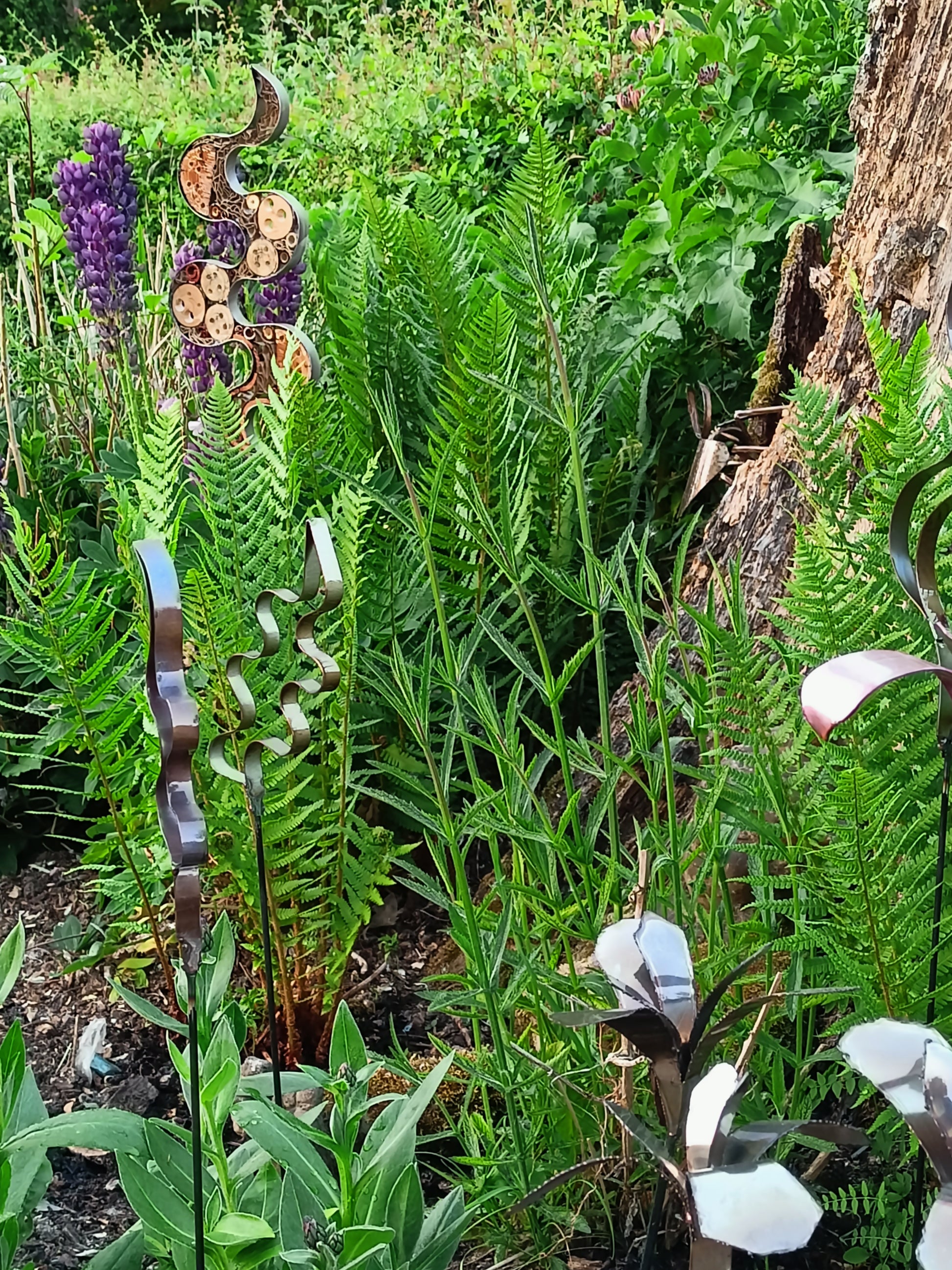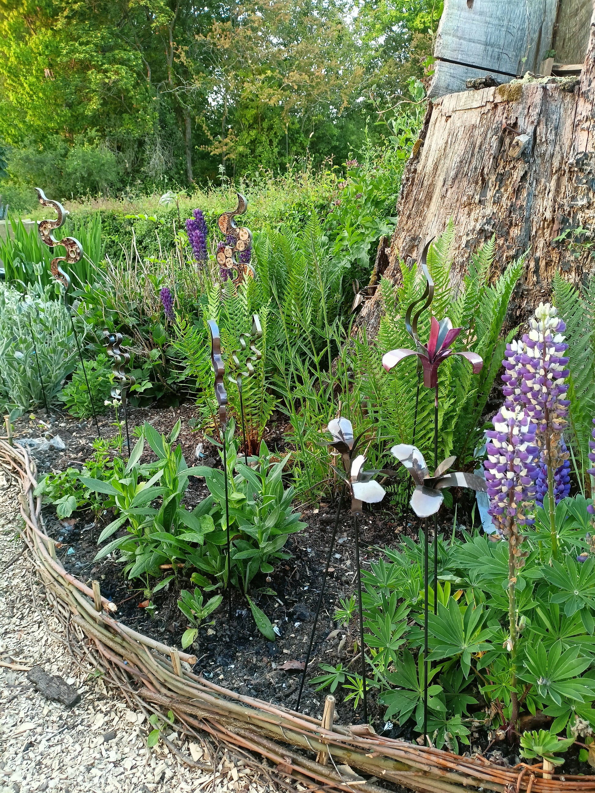 Tired of those flowers blooming and dying ever season? Want to add a glint and sparkle to your garden. These iris’s are designed for you. Coloured and custom built for you these Irises brighten up your space. Designed to work within your plants in summer and bring colour through winter. Handmade, upcycled and bespoke.