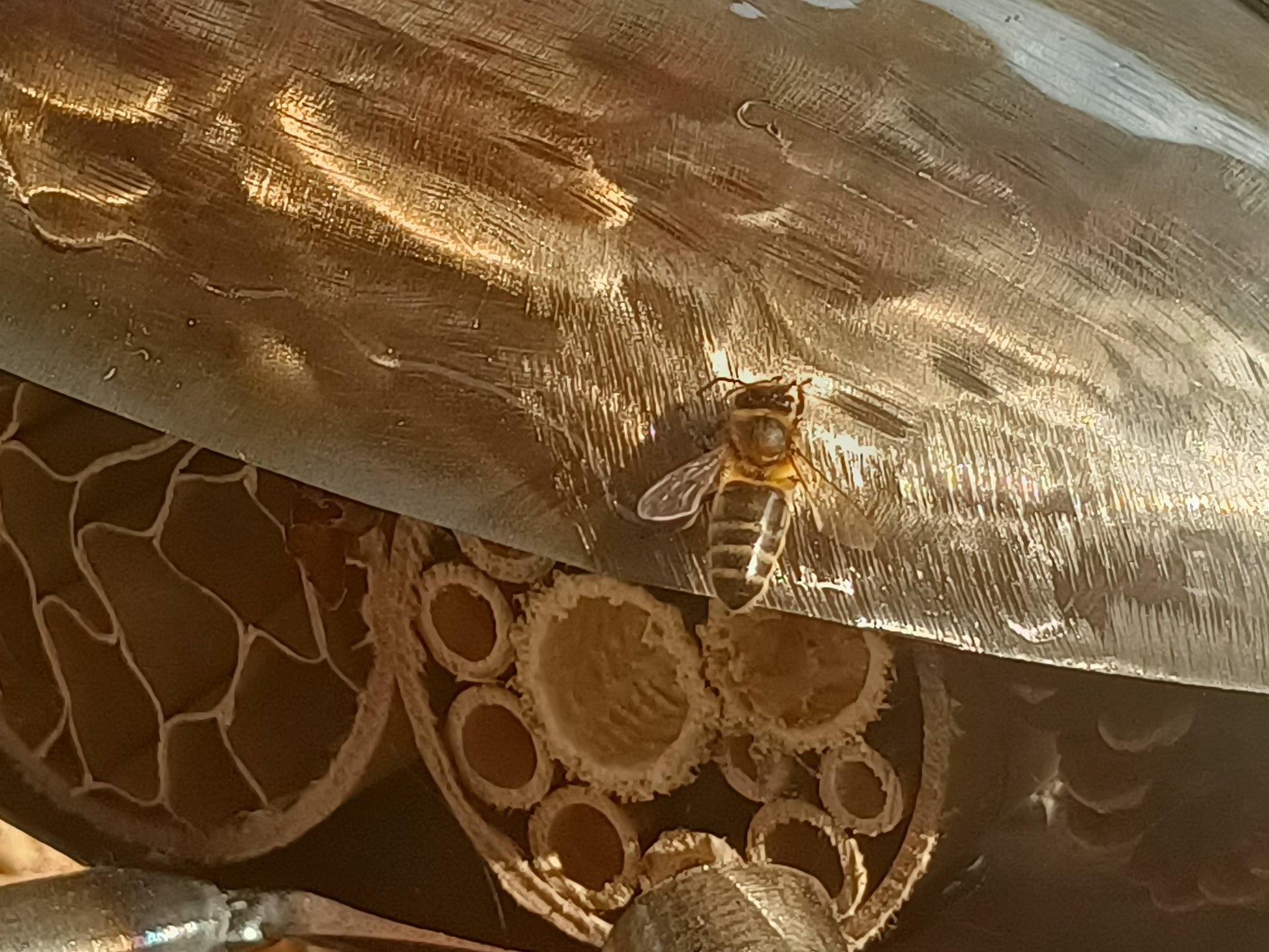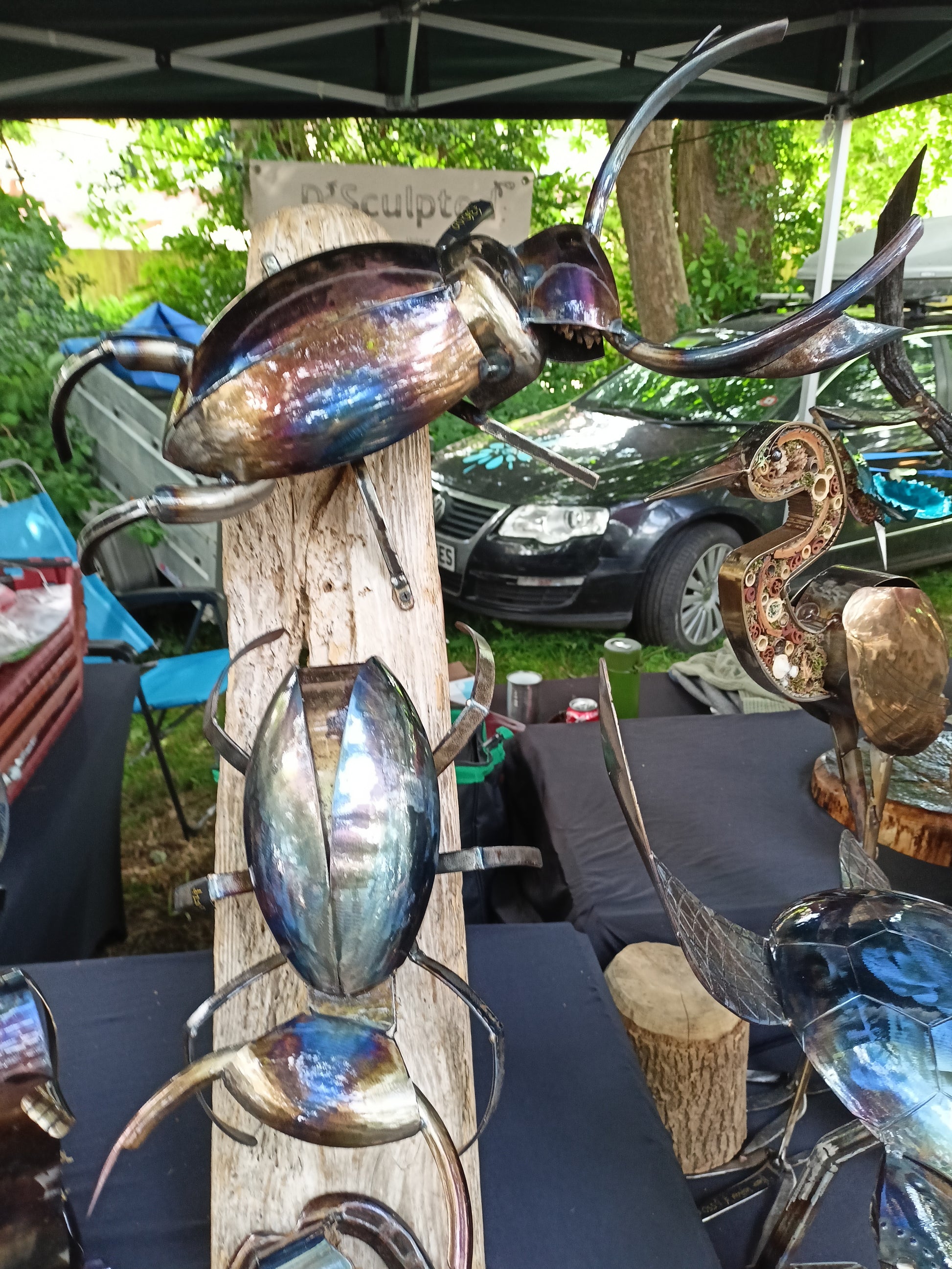 Although material sources vary according to availability, generally the legs are made using a combination of gas canister and reclaimed bike frame. He has screw points at the ends of his legs to allow easy attachment to a garden fence or wall. He also looks great under the eaves of any building. Contact Darren for specific requirements.