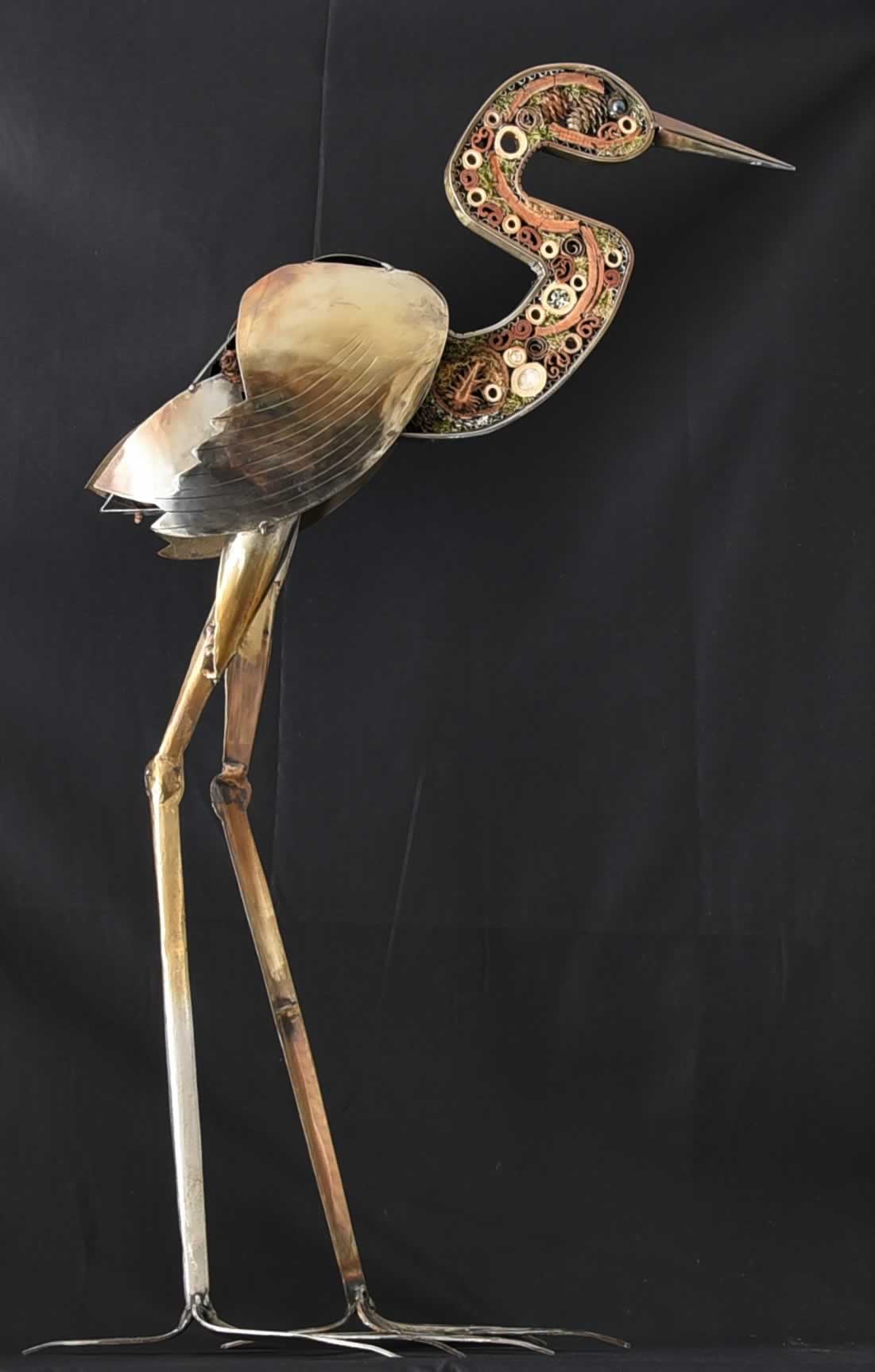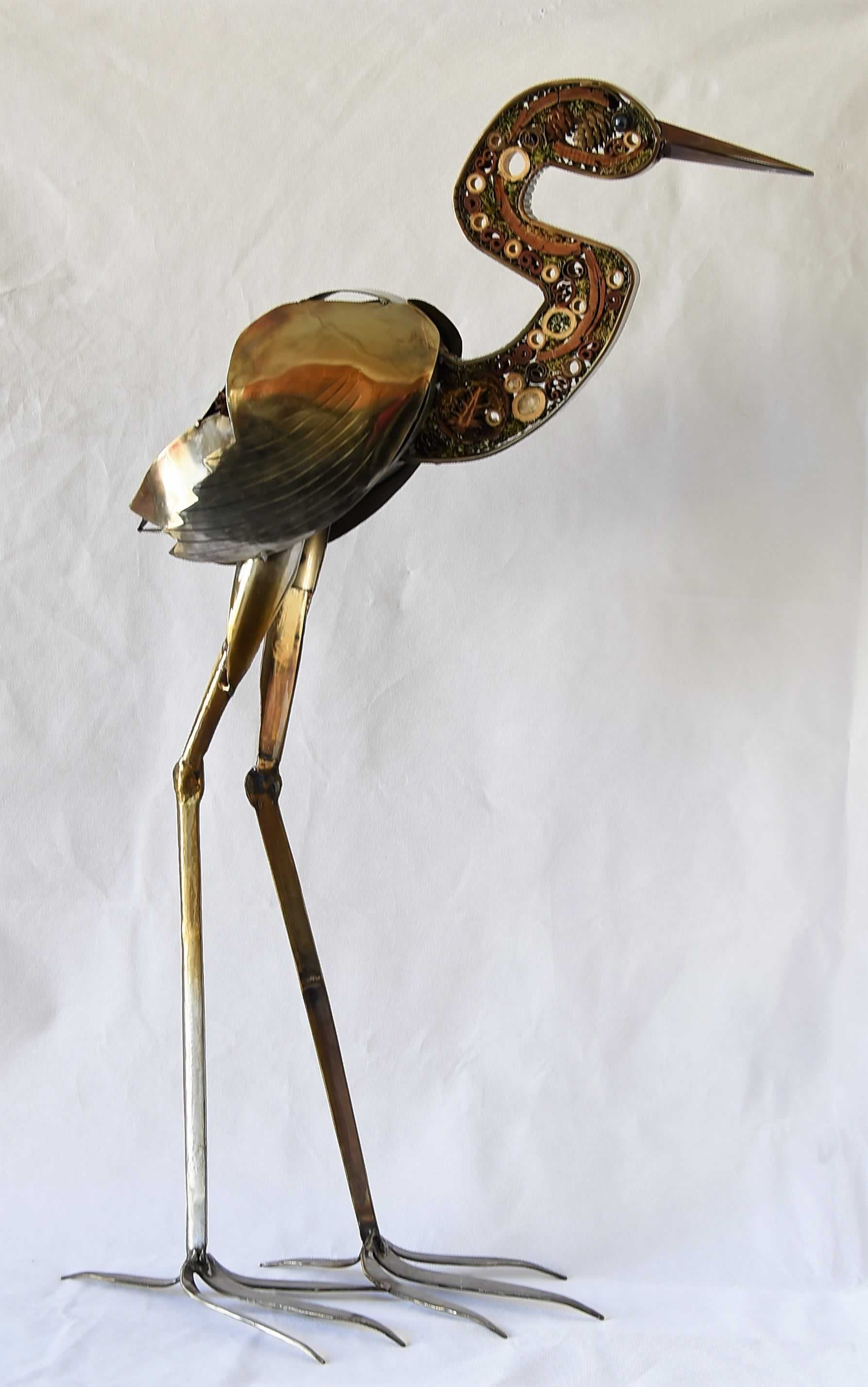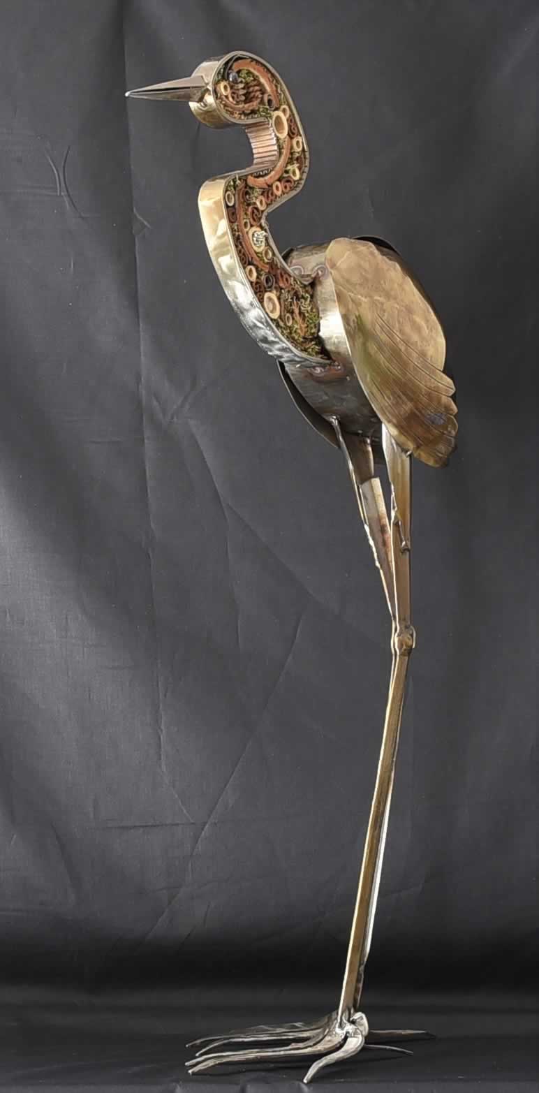 Each part of this beautiful Heron inspired piece has been carefully crafted from flat sheet pieces of metal, obtained from a gas griddle, removed from a Royal Navy Minesweeper as part of a refit.