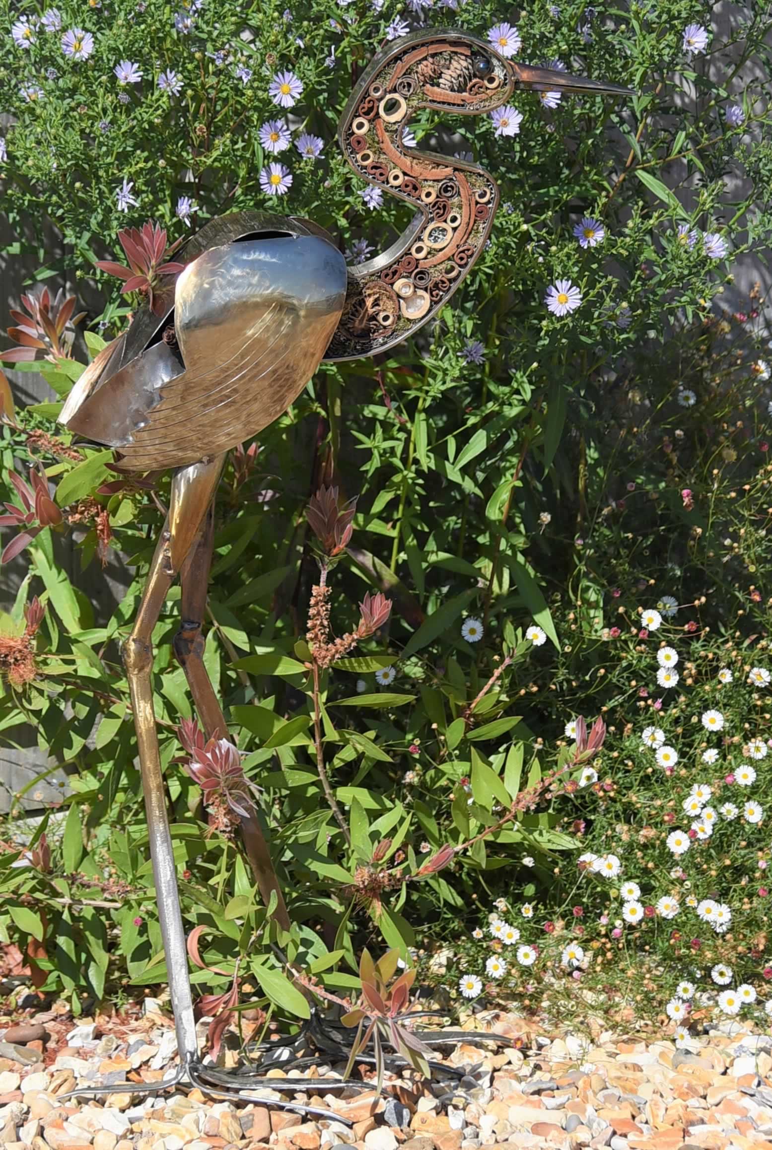 Nadia the heron is always standing guard, over your outdoor space, if you have a pond then lookout fish!